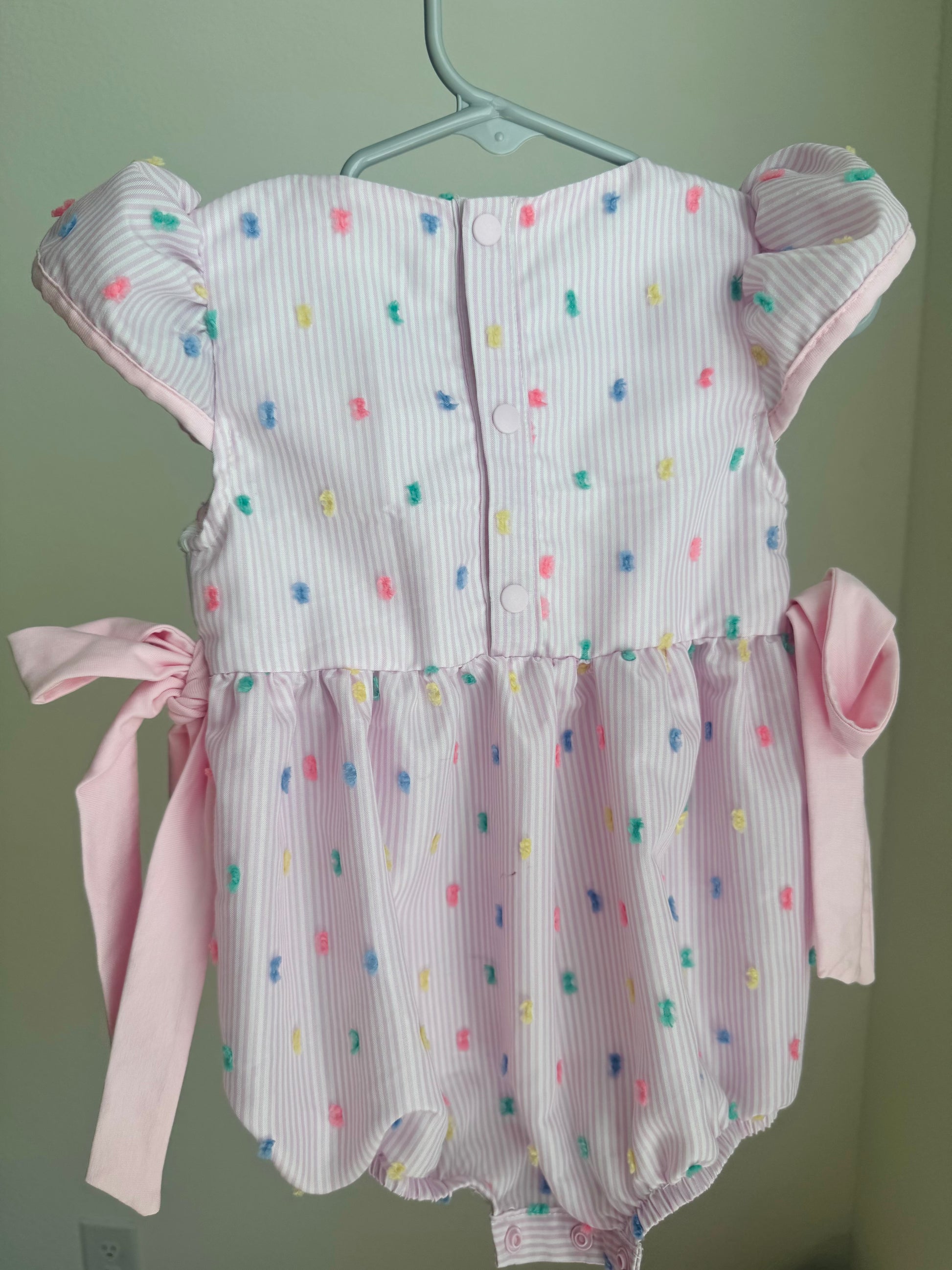 Hand smocked Swiss dot birthday girl bubble for all of your precious little ladies special day! :)